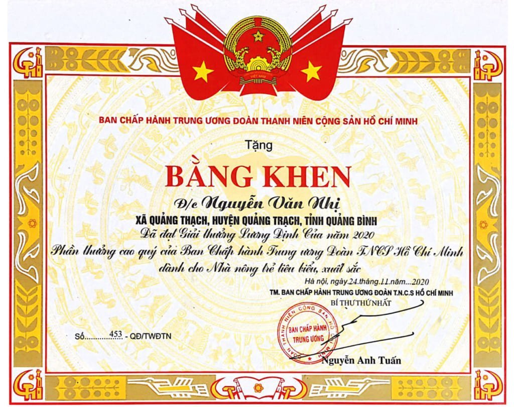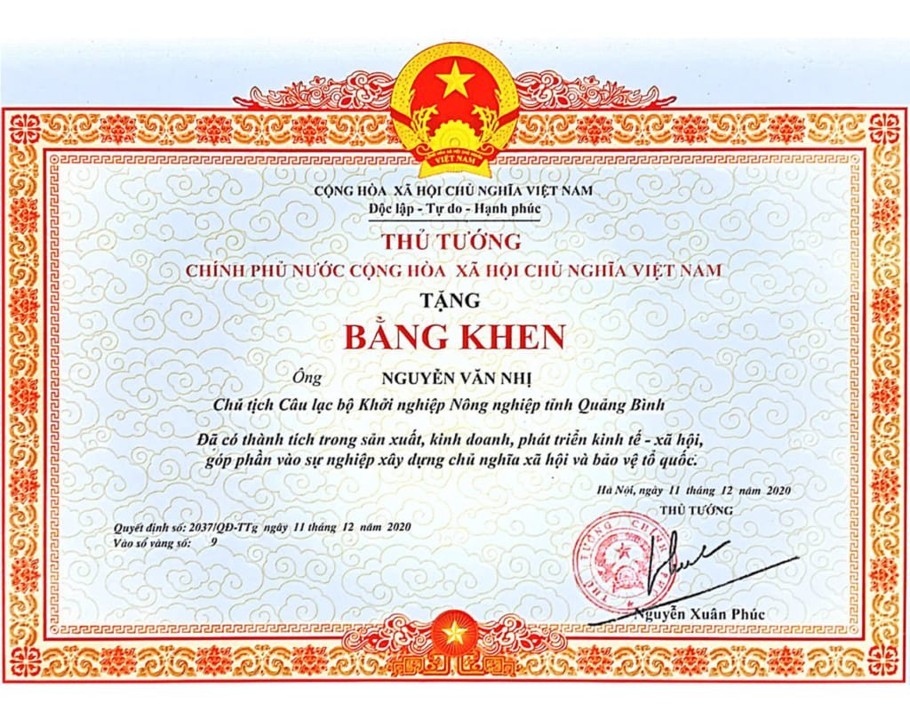 Với những kết quả đạt được, công ty vinh dự nhận được nhiều bằng khen của các đơn vị tổ chức tại địa phương và Trung ương. Đặc biệt, tháng 12/2020 anh Nguyễn Văn Nhị vinh dự nhận được Bằng khen của Thủ tướng Chính phủ vì “Đã có thành tích trong sản xuất, kinh doanh, phát triển kinh tế – xã hội, góp phần vào sự nghiệp xây dựng chủ nghĩa xã hội và bảo vệ tổ quốc”.